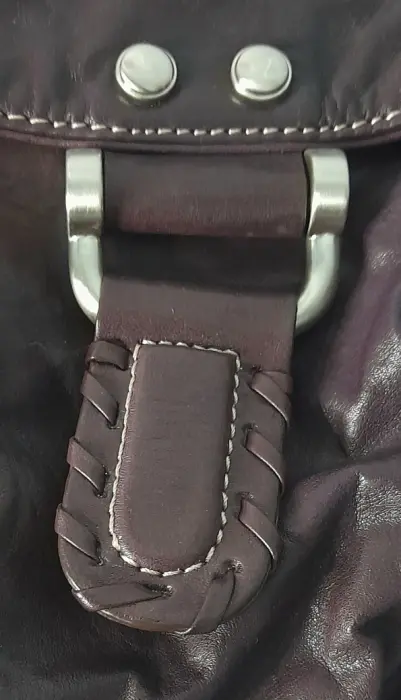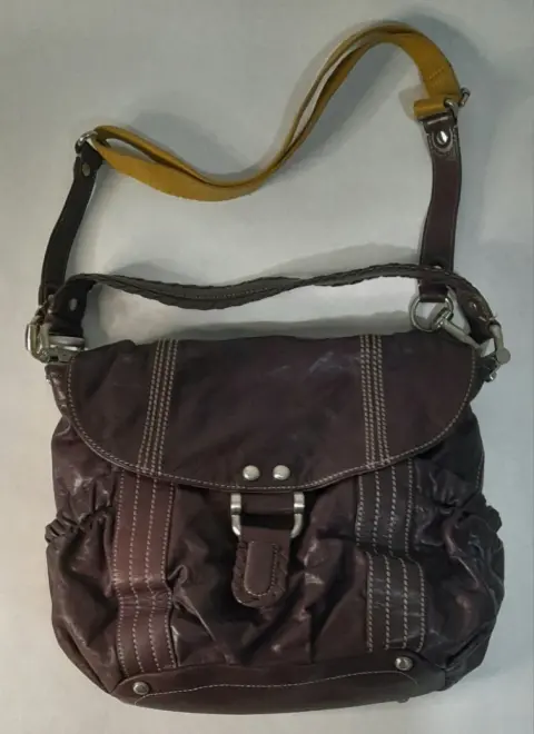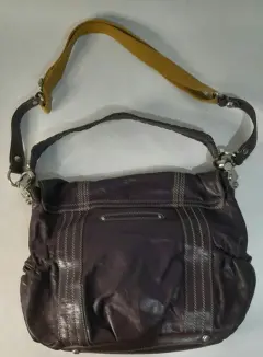 Bolso SEMINUEVO para dama, marca MAKOWSKY, bolso tipo hobo, color morado berenjena, asa de mano y correa para colgar, corte 100% piel genuina, forro textil, herrajes metálicos, 32 cm de ancho X 25 cm de alto.