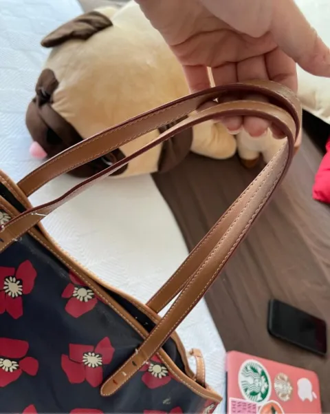 Hermoso y súper practico tote, en perfecto estado sin detalles. Cabe una laptop perfectamente y la soporta así como muchas cosas más. Yea su gancho para hacer elBolso más pequeño y bolso interno.