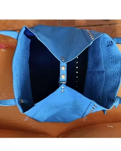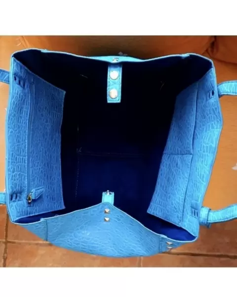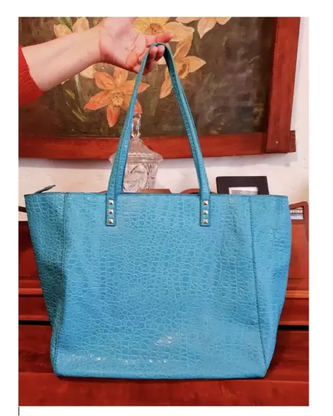 Padrísimo Tote Nine west color turquesa con estoperoles. Tiene varios compartimientos dentro y tiene un gran espacio para llevar todo lo que necesitas. Un broche interno que la hace lucir tipo bolsa hobo. Sólo la usé 1 vez, está como nueva, SIN detalles. Hermosa, práctica y con mucho espacio.