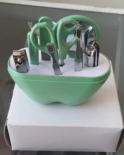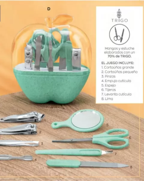 Juego de manicura ecológico. Juego de manicura, elaborar en trigo mango y estuche, contienen 8 piezas. Totalmente nuevo.
