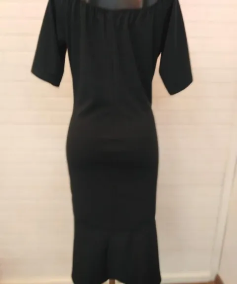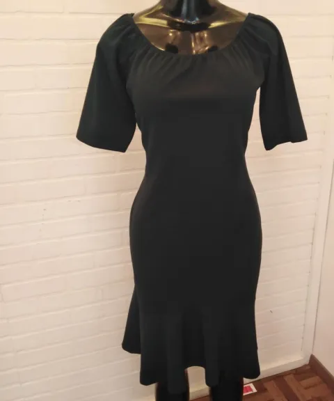 Vestido corto, colo verde pino, corte campana, tela viscosa, poliamida y elastano, cuello redondo, talla 38 axila a axila son 102cm, cintura 94cm y cadera 108cm, tela spandex
