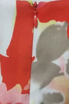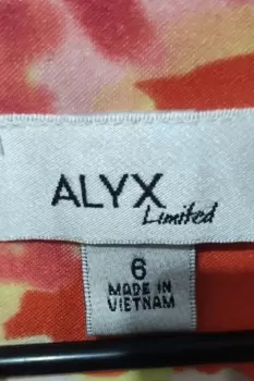 ALYX Vestido Rodilla Floreado Mujer 6. Luce fresca y siéntete bella con este vestido excelente para un viernes casual con la familia o amigos, en un click!!Talla: 6Material: 97% Poliéster, 3% SpandexMedidas: Largo 83, Axila 43.5, Cadera: 41 cmColor: Naranja con floresDetalles: corte recto, no tiene detalles