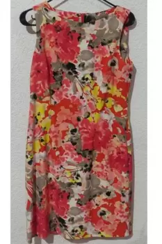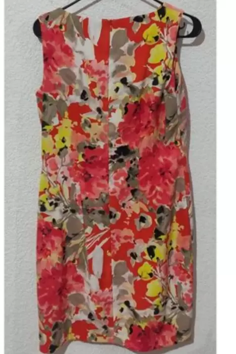 Luce fresca y siéntete bella con este vestido excelente para un viernes casual con la familia o amigos, en un click!!Talla: 6Material: 97% Poliéster, 3% SpandexMedidas: Largo 83, Axila 43.5, Cadera: 41 cmColor: Naranja con floresDetalles: corte recto, no tiene detalles
