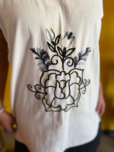 Bata Bordada A mano. Nuestra bata blanca bordada a mano es mucho más que una simple prenda de vestir, es una pieza única y exclusiva realizada con amor y dedicación por artesanos expertos en el arte del bordado. Cada puntada está cuidadosamente elaborada para crear un diseño elegante y sofisticado que destaque la belleza y la calidad de la prenda.