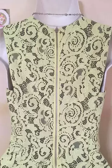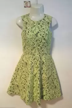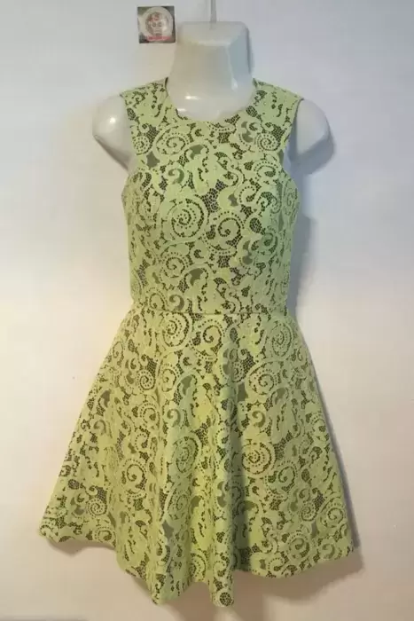 Vestido floreado de la marca BeBe XXS Lindo vestido coctail, fiesta fresco de la marca Bebe en talla XXS color amarillo fondo negro, tipo encaje algodón, Frente 37 cm, Cintura 32 cm, Largo 85 cm.