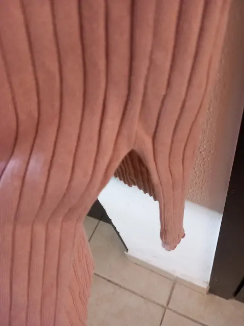 Bella en rosa. Hermoso vestido de punto, largo a media pierna, manga larga, cuello redondo y abertura lateral. Se puede usar con cinturón. Ligero y con caida