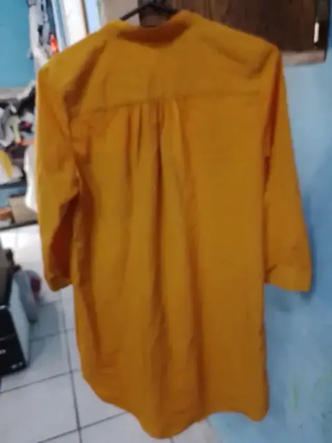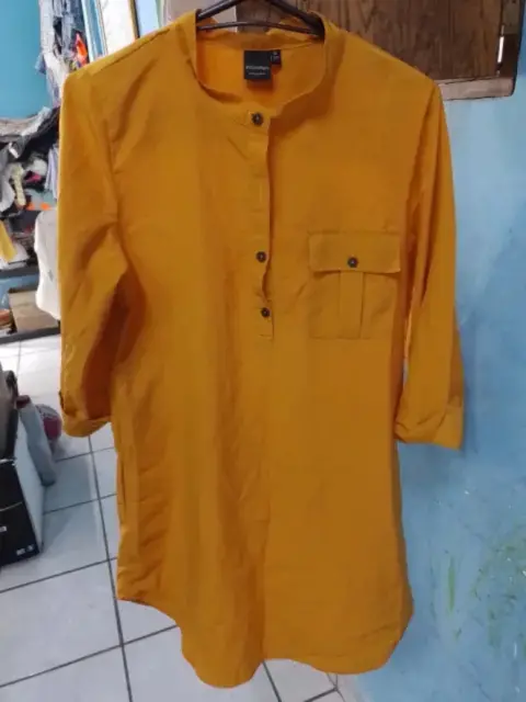 Bluson tipo vestido de dama talla mediana. Blasón tipo vestido de dama talla mediana color mostaza no estira tie detalle de una pequeña marchita