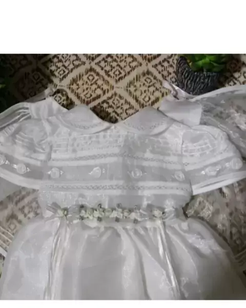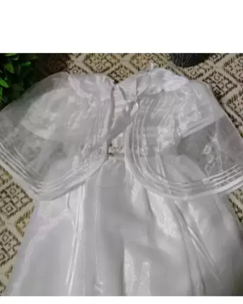 Es un Ropón muy lindo en color blanco de modelo sencillo pero muy elegante y puesto se ve hermoso, viene en talla 9-12 m está tal cual se ve en las fotos 🤗🤗🎉