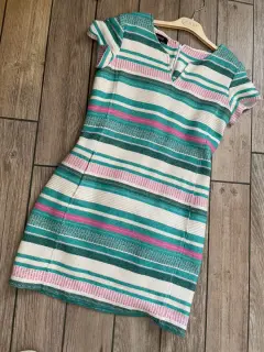 Bonito vestido!!. Vestido de rayas con bolsas laterales lleva forro 100ciento algodón. La tela es algodón, acrílico y poliamida.