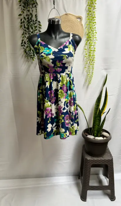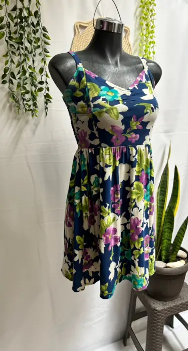 Vestido de Dama AEROPOSTALE, bonitos adornos de flores, súper fresco, talla L,☘️95% Algodón, 5% Spandex, ☘️🌸Medidas: 39 Axilas, 37 cintura( trae resorte en la cintura), 93 largo🌸🎁Incluye Regalito Sorpresa Gratis 🎁