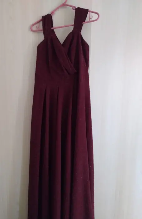 Bonito vestido de noche. Vestido de noche color Tinto con destellos talla grande sin detalles solo una puesta