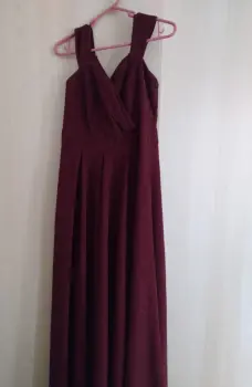 Vestido de noche color Tinto con destellos talla grande sin detalles solo una puesta