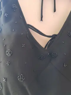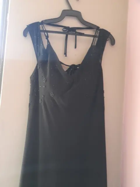 Bonito vestido de noche en talla 6. Bonito vestido de noche en color negro con elegantes aplicaciones con escote en espalda