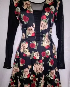 Bonito vestido nuevo , talla chica spandex da a mediana , estampado floreado con transparencia negra, muy fashion !