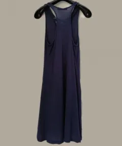Vestido casual, de algodón, color azul marino, sin mangas. El detalle, el cordón que se ve desgastado pero se lo puedes cambiar (foto 4). Y la tela tiene un poquito de bolitas, se ve en las foto 5. No tiene muchas y no se nota.