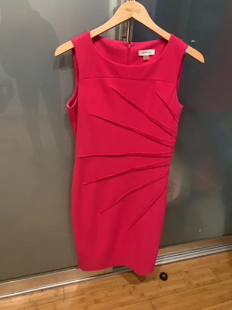 Calvin Klein elegante vestido toda ocasión. Vestido recto color rosa fucsia sin mangas. Detalle drapeado. Calvin Klein. Una sola puesta. Talla 6. Elegante. Ideal para toda ocasión.