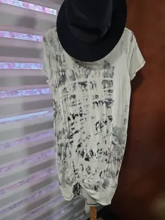 Vestido tipo camisero. Cómoda tela, excelente a usar solo o con leggins. Manga corta. Detalle en listón .