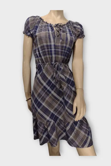 Converse Vestido Dama Marrón Escoces M. Converse Vestido Dama Marrón Escoces MVestido Converse 100% Poliéster con estampado escocesMarca: ConverseOrigen: IndiaMaterial: PoliésterTalla: MEstilo: CasualPatrón: Estampado EscocesColor: Marrón y Líneas blancas y azulesCierre: AbiertoPecho: 49 cmCaderas: 48 cmCintura: 43 cmLargo: 89 cmHombro: 34 cmmanga: 11 cmRopa de USO en muy buen estado