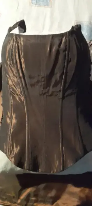 Corset y falda de tafetán café canela tornasol negro, talla 6 nuevo. Vestido de fiesta. Falda en corte A y corset con cierre trasero y cintas para su ajuste a los costados del mismo. Comprados en Palacio de Hierro. Marca Opulence