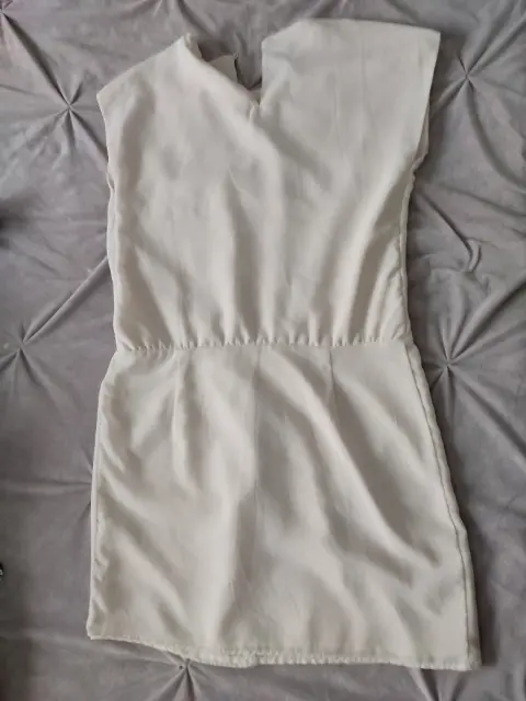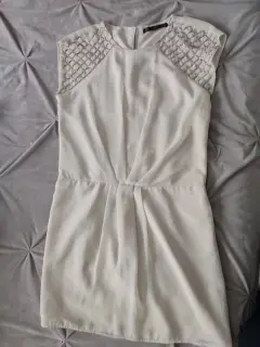 Delicado vestido. Vestidito de gasa con fondo, color beige y aplicaciones doradas al frente, muy elegante.