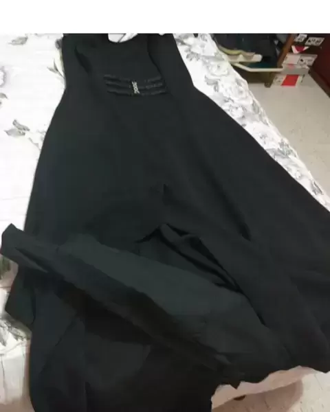 Hermoso vestido de noche, fiesta o graduación, color negro,talla M con discretos tirantes, hermoso detalle en color plata con piedritas y cintas bajo el busto, viene con forro del largo del vestido, esta en perfecto estado, ha sido usado un par de veces.