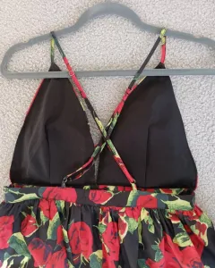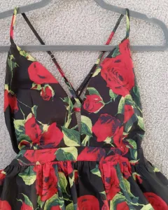 Divino Vestido Fiesta. Precioso, ideal para fiestas o sesión de fotos.Negro con rosas rojas.Solo lo usé una ocasiónPuede quedar desde MTiene abiertas en ladosEnvío en caja reciclada