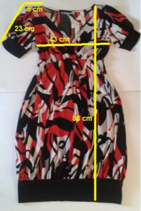 Este divino vestido multicolor (Negro/ blanco/ rojo / negro) es perfecto de dìa o de noche, ademas que lo puedes adaptar con un saco de los colores antes mencionanos y te hace ver espectacular.Compuesto de 95% Poliester y 5% elastàno.Es suelto y no queda pegado, basado en su costura te hace lucir una bella figura y sus mangas con toque de glamour.Es talla 28, pero si eres talla chica o mediana te quedarà perfecto.