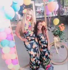 Dúo madre e hija. Vestidos dio madre e hija para fiesta tropical Talla mamá M Talla niña 10-12 años