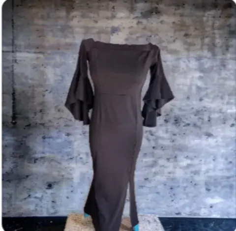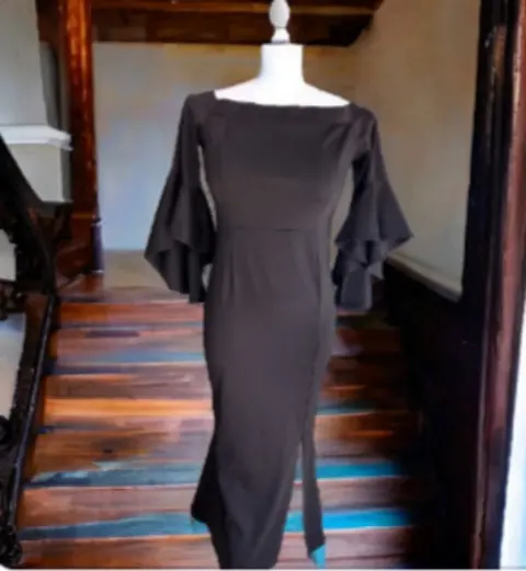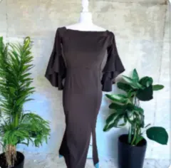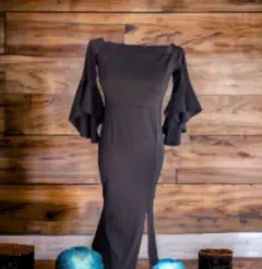 Hermoso vestido color negroManga con caída. Qué le hace lucir elegante,Largo, elegante, y cómodo, con cierre en aberturaEn talla XL ,