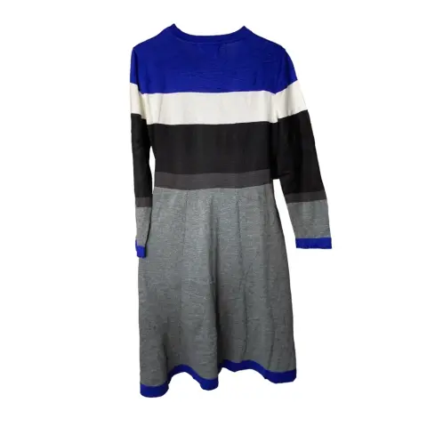 Eliza J vestidos Vestido Azul Rey. Vestido de tejido de punto a rayas y liso, con escote redondo y manga 3/4. Combínalo perfecto en primavera verano con zapatillas azules o tacones planos blancos. En invierno puedes usarla con medías o leggins azul rey ligeros con botas altas100% Acrilico