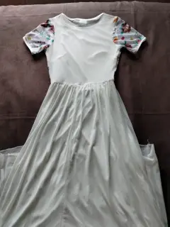 Es vestido largo color hueso, marca Líneas, talla M, entalla muy bien a la cintura con estampado floral en la parte de enfrente, forro 100% poliester