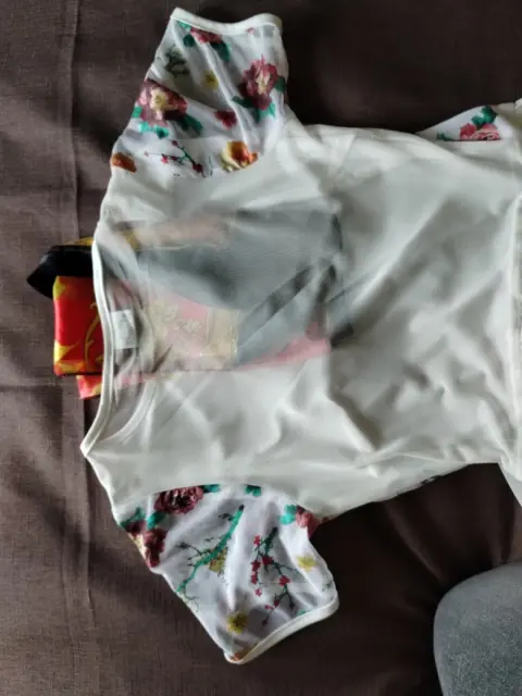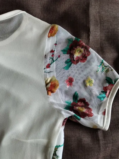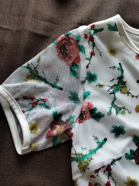 Es fresco, con escote transparente de la espalda. Es vestido largo color hueso, marca Líneas, talla M, entalla muy bien a la cintura con estampado floral en la parte de enfrente, forro 100% poliester