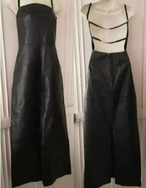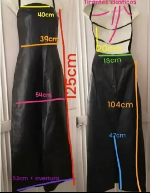 Estraple SEXY GENUINE LEATHER. LUXURY de GAMA ALTA VESTIDO de cuero/piel GENUINE LEATHER 100% ORIGINAL de marca SHAPES EX largo corte strapless sin espalda tirantes de elástico autoajustable EXELENTES CONDICIONES (medidas en foto NO EXPANDEX) interior con forro tipo faja (foto ilustrativa) EXELENTES CONDICIONES PODRÍA PASAR POR NUEVO!.