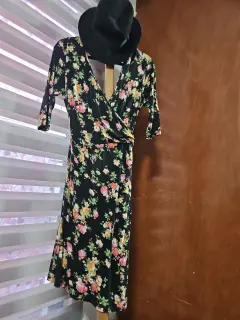 Vestido Basel talla 32, tela deliciosa al contacto con la piel, manga 3/4. Fresco, elegante y original. Contraste de flores en rosa pálido.