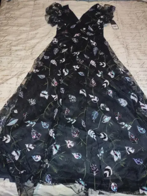 Hermoso maxivestido de fiesta, con pequeñas lentejuelas brillantes, fondo interno y una pequeña crinolina nuevo con etiqueta.