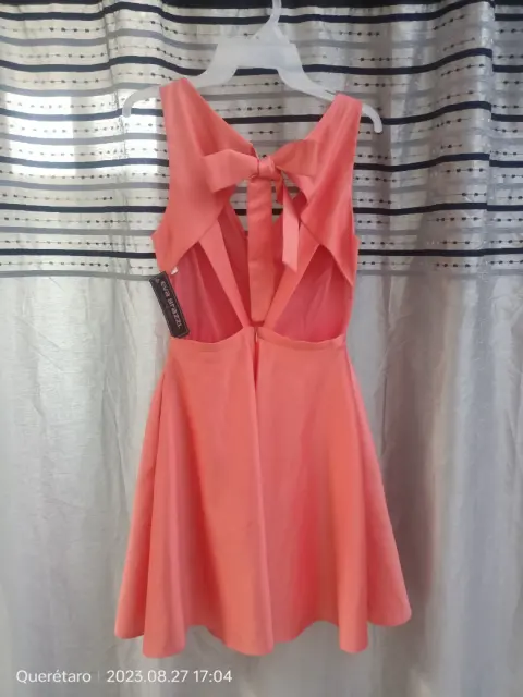 Hermoso Vestido Línea A, Color Coral, Varillas Laterales para dar Soporte, con Tirantes y Moño en la Espalda.De Tela Tipo Razo.Le Falta Tintorería por polvo, ya que, ha estado guardado en el Vestidor por mucho Tiempo.