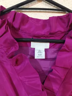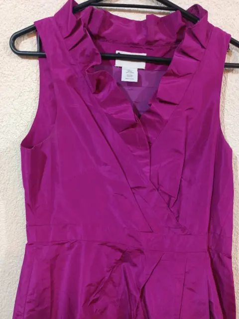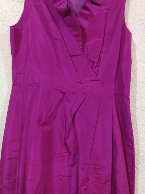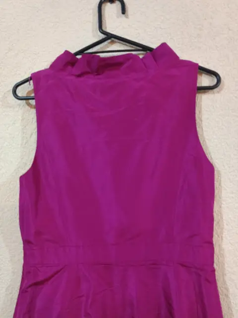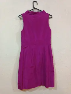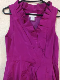 Hermoso Vestido. Hermoso Vestido de fiesta, cuello en V, con pequeño olan sin manga, color bugambilia