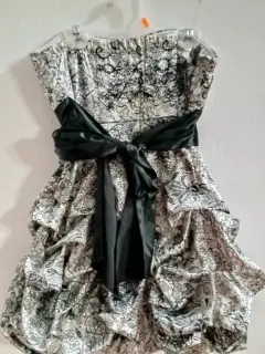 Vestido americano juvenil, estampado satinado, nuevo con detalle parte de enfrente y moño parte de atras, para coctel o cualquier ocasión. Talla mediana