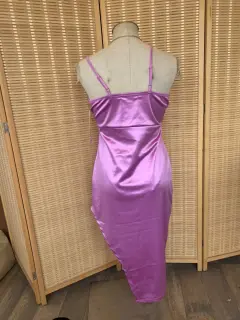 Hermoso vestido talla L, en color lila , tela satinada, nuevo con etiqueta