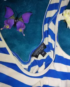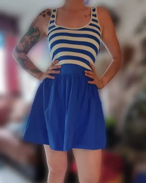 Hermoso vestido azul rey con blanco talla chica pero tambien queda mediana, acinturadito para lucir hermosa!!!Envío todos los días de lunes a sábado.