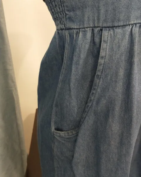 Vestido Casual de mezclilla, hace buena forma, ideal para días de calor ..para playa, o solo una cita relajada con amigos. La mezclilla y el cierre son de buena calidad y la tela de arriba es de algodón .te va a encantar