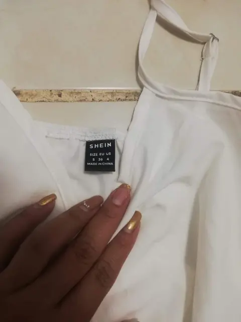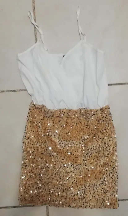 Vestido corto color blanco con dorado, con lentejuela, nuevo talla S da perfecto a M