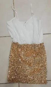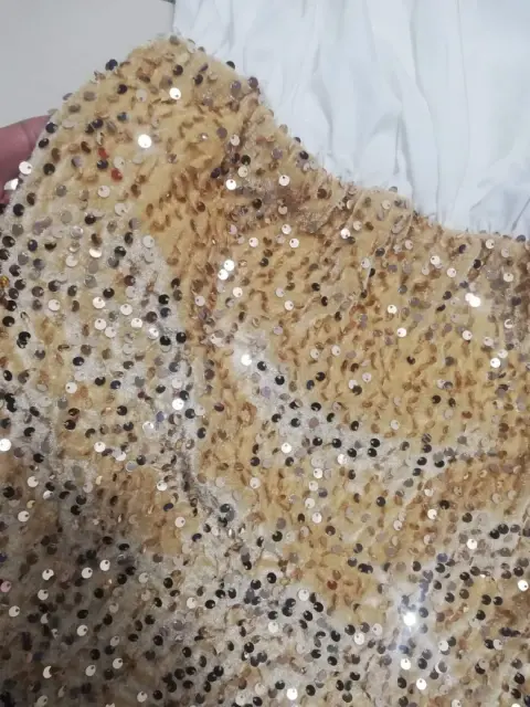 Hermoso vestido con lentejuela. Vestido corto color blanco con dorado, con lentejuela, nuevo talla S da perfecto a M