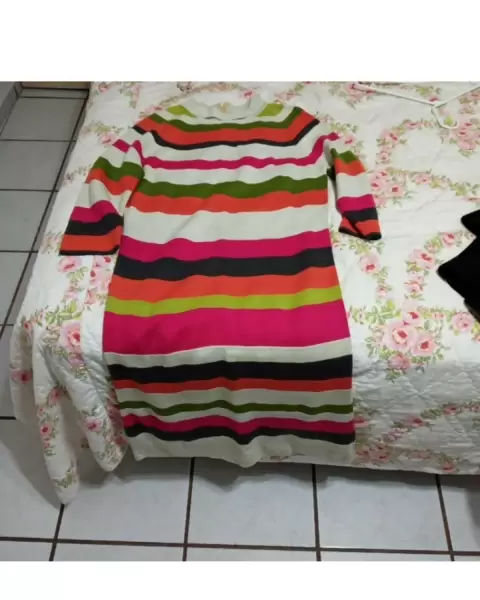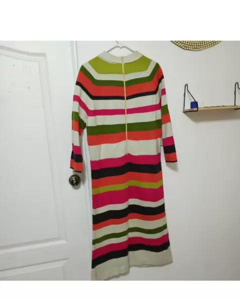 Hermoso vestido con rayas horizontales de colores.. Hermoso vestido con rayas horizontales de colores. Queda en talla L/XL(Yo lo usaba con un cinturon en la cintura). Ideal para el otoño-invierno.MedidasHombro a hombro: 39cmAxila a axila: 49cmLargo: 115cmCintura: 45cm