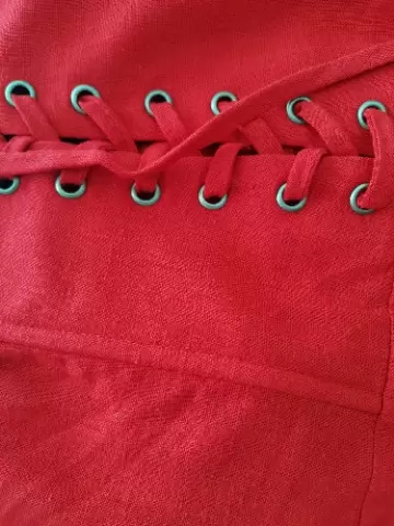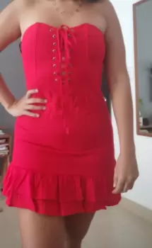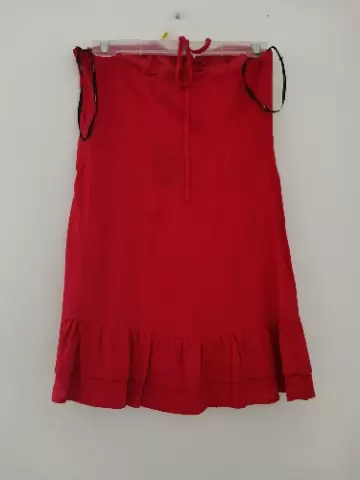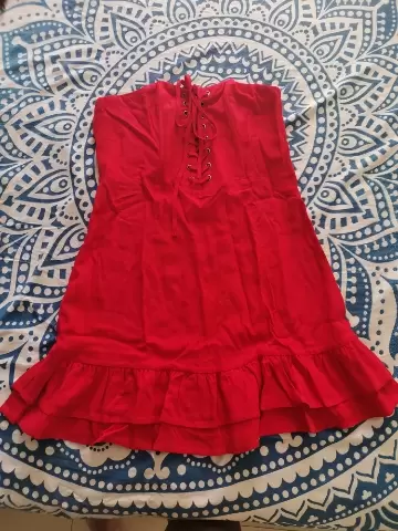 Vestido estilo corset straplee rojo es totalmente nuevo color rojo, tela tipo lino súper bonito y fresco es talla M sin ningún detalle, tiene cierre de lado para poderlo poner y cordón en pecho para ajustar el corset