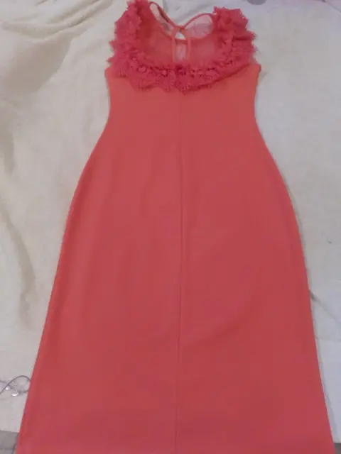 Hermoso vestido de cóctel. Hermoso vestido de cóctel, entallado de tres cuartos de largo, con detalle al frente y espalda en transparencias, flores y encaje del mismo color.