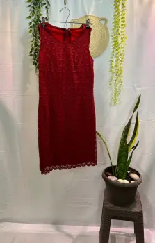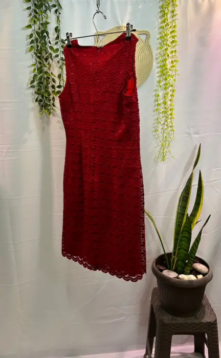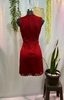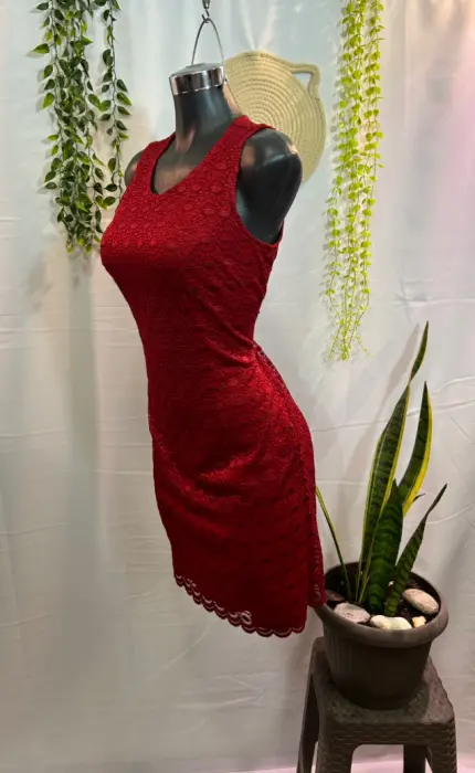 Hermoso Vestido de Encaje Rojo☘️☘️🌸🌸. Hermoso vestido de encaje rojo, sin mangas, talla chica, sin marca, excelente estado, trae su forro, ☘️D074☘️💟Incluye gratis Regalo Sorpresa💟
