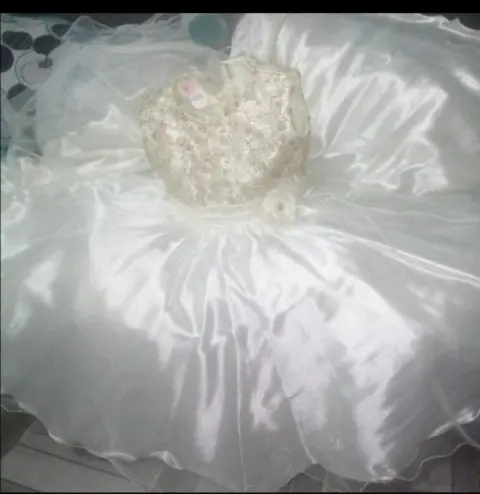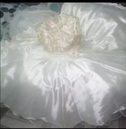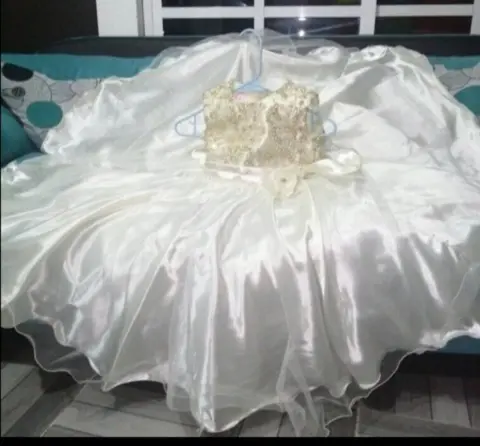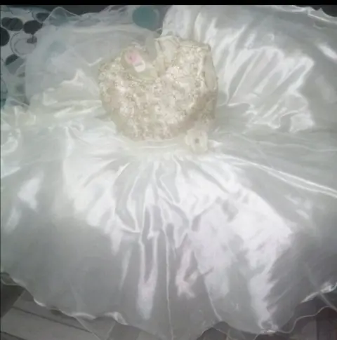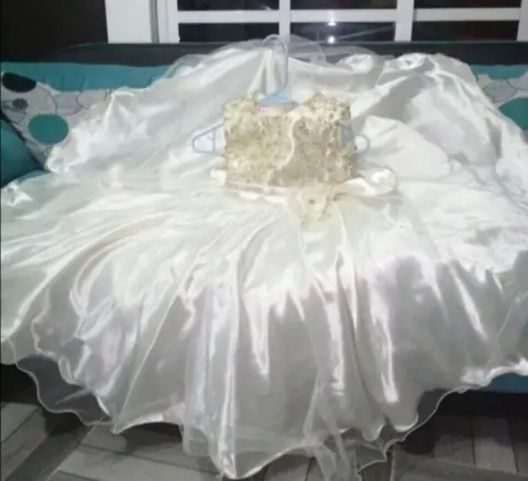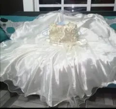 Hermoso!!! 💅💅💅☺️☺️vestido de fiesta ampon y largo -kids. Hermoso!!! 💅💅💅vestido de fiesta para niña de 6 años beige ampon y largo con moño en el costado derecho con cintas traseras para ajustar en la parte del torzo adornado con listón dorado