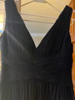 Hermoso vestido de fiesta color azulMarino con un detalle cruzado debajo del busto (tiene copas) que favorece la figura. Talla 10. Marca Rue de la Paix .