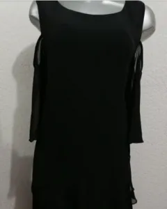 Vestido que sin duda puede ser un básico para esos eventos 3speciales, boda, funeral, una fiesta de coctail. En la falda trae unos tipos olanes con pedrería, y si se descocen, no te preocupes trae repuesto, forro del mismo tono. Medidas largo 106.5cm, axila a axila 67cm, tirante a tirante 40cm